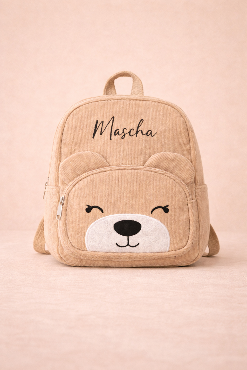 Schenke deinem kleinen Abenteurer ein ganz besonderes Geschenk – unseren Cord-Bärenrucksack, individuell mit seinem Namen gestaltet!
